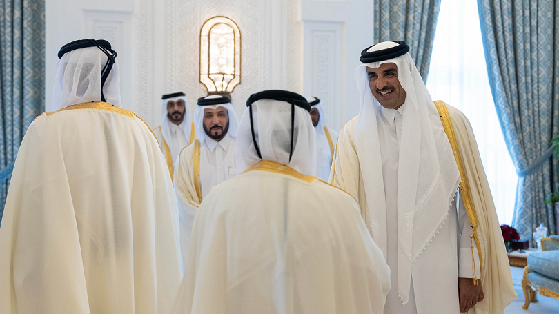 استقبل حضرة صاحب السمو الشيخ/ تميم بن حمد آل ثاني صباح الأحد بتاريخ 14-1-2024م في الديوان الأميري رئيس ونائب وأعضاء المجلس البلدي المركزي،