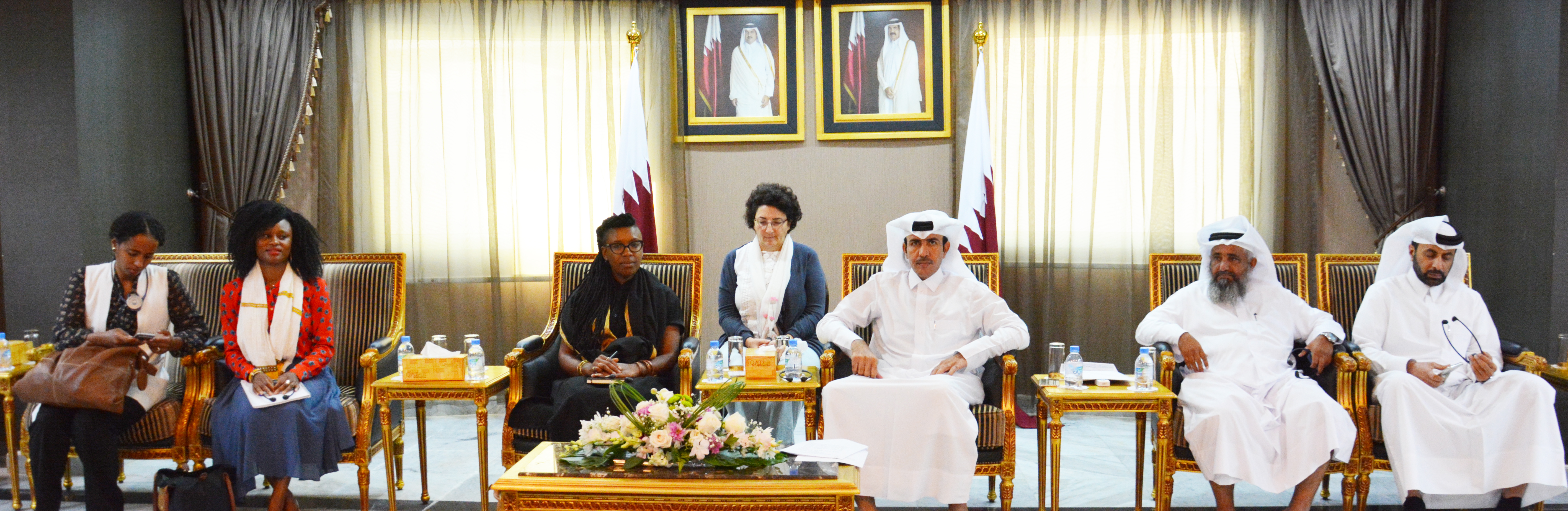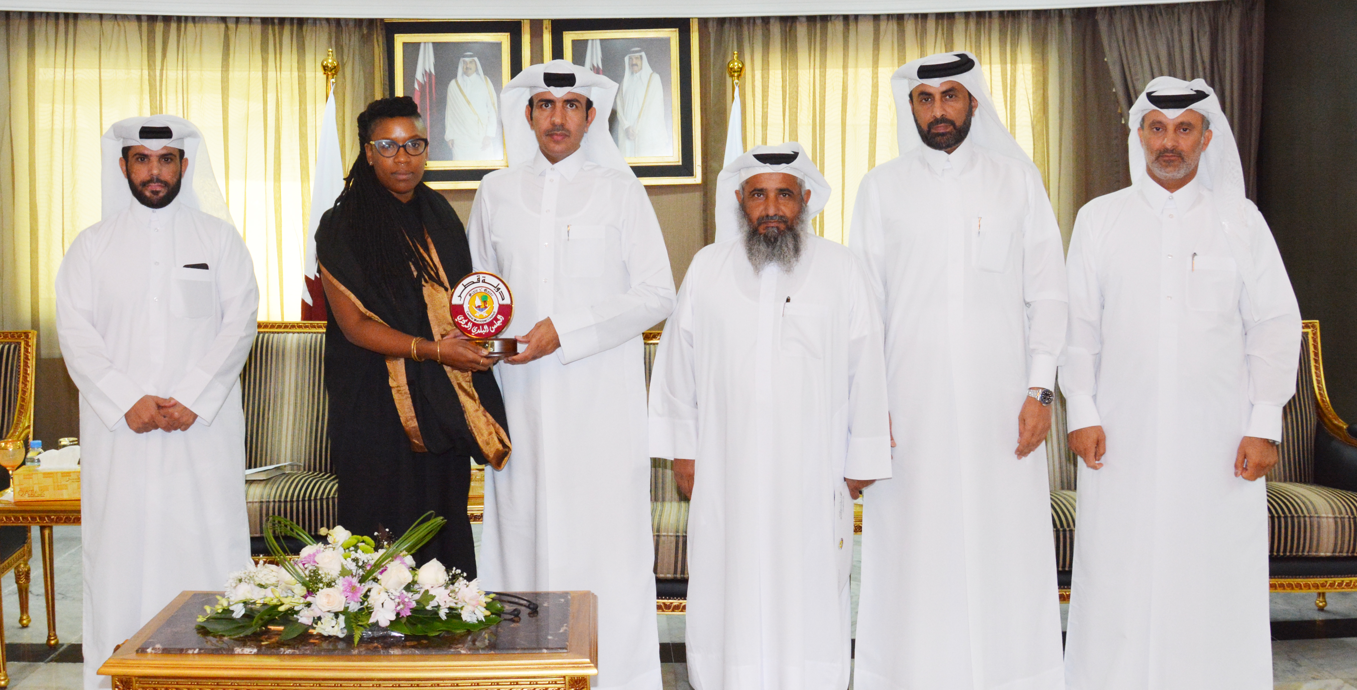 جانب من اللقاء أستقبل السيد محمد بن حمد العطان، نائب رئيس المجلس البلدي المركزي، السيدة إي تيندايي أشيومي المقرر الخاص المعني بالأشكال المعاصرة للعنصرية والتمييز العنصري وكره الأجانب وما يتصل بذلك من تعصب، التابع لمجلس الأمم المتحدة لحقوق الإنسان، وذلك بمقر المجلس البلدي.
